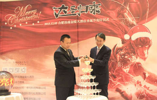 12月5日晚,“大圣歸來(lái)”圣誕亮燈儀式在合肥泓瑞金陵大酒店盛大開(kāi)啟。幸福航空路玉龍機(jī)長(zhǎng)和酒店VIP客人、媒體朋友及酒店員工歡聚一堂,共同拉開(kāi)圣誕的序幕。