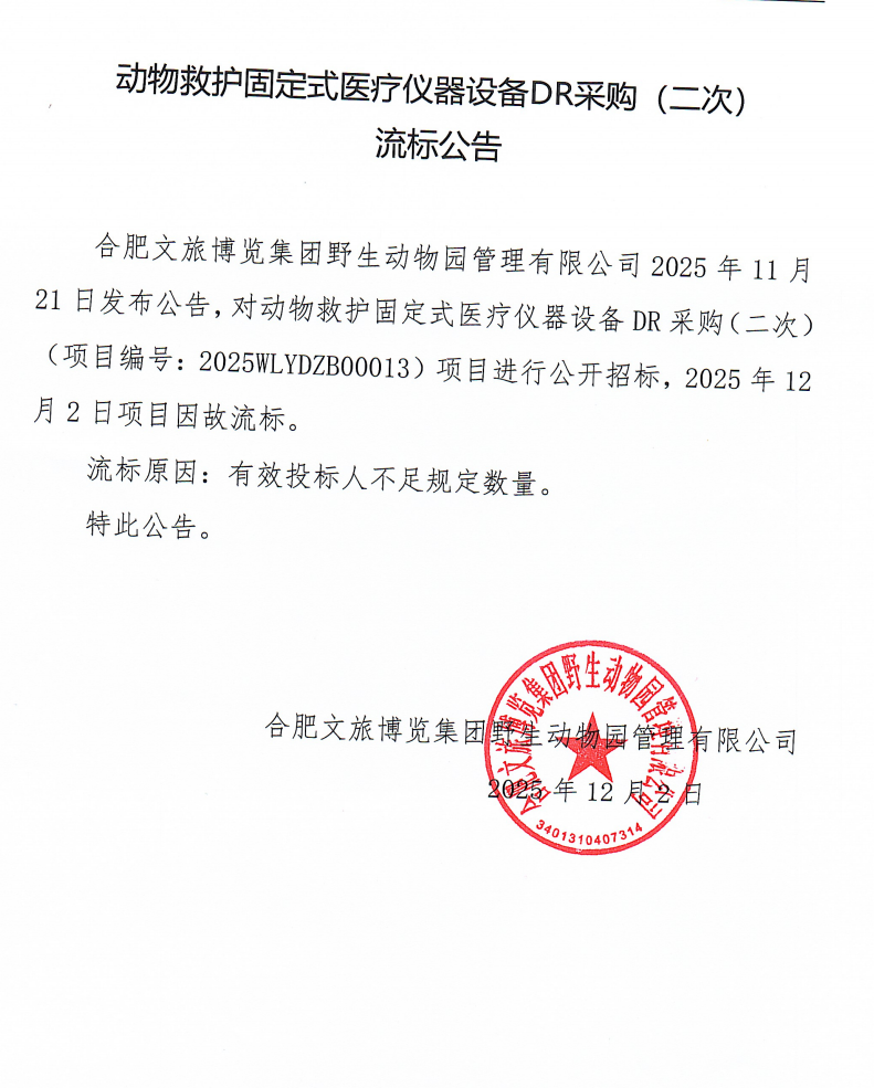 動物救護固定式醫(yī)療儀器設(shè)備DR采購(二次)流標(biāo)公告