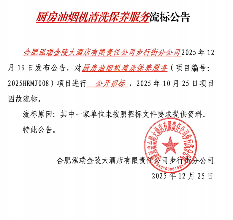 廚房油煙機(jī)清洗保養(yǎng)服務(wù)流標(biāo)公告